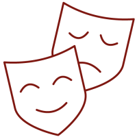 Notre castelet en toile de couleur bordeaux, neutre, permet de mettre en avant le spectacle de marionnettes à gaines avec un éclairage en façade et à l’intérieur.